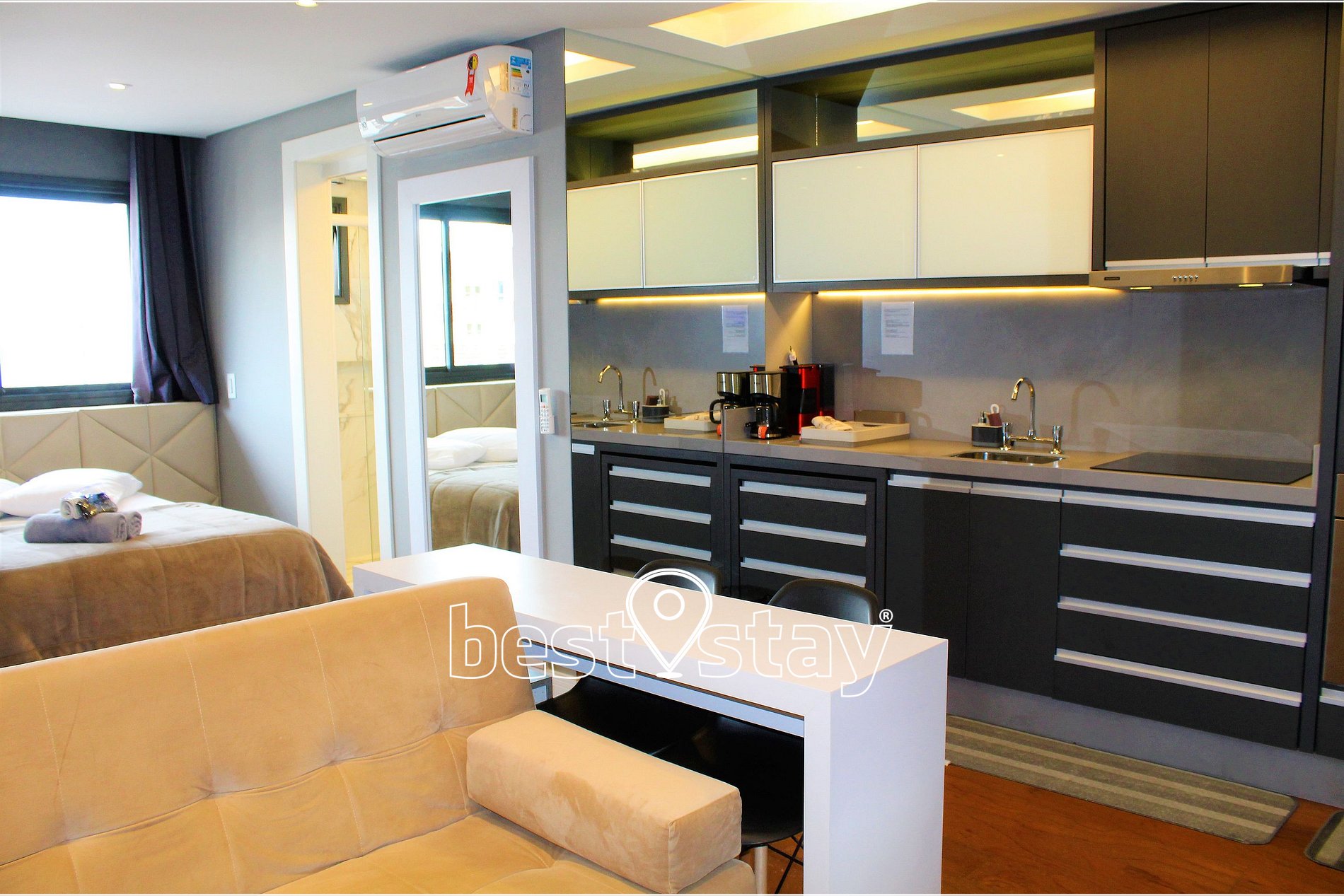 O atendimento da equipe Best Stay foi excelente, sempre com rapidez e presteza. O apartamento estúdio oferece ótimo conforto para quem trabalha e também precisa descansar com qualidade. A infraestrutura próxima oferece muitas boas opções.