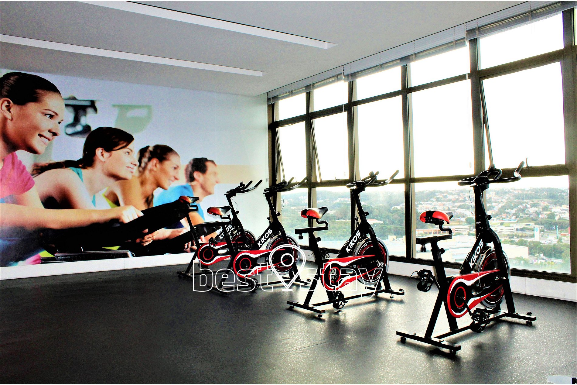 Não há academia com pesos e aparelhos de musculação no condomínio. Somente área com bicicletas ergométricas, Ginástica, alongamento, yoga, etc.