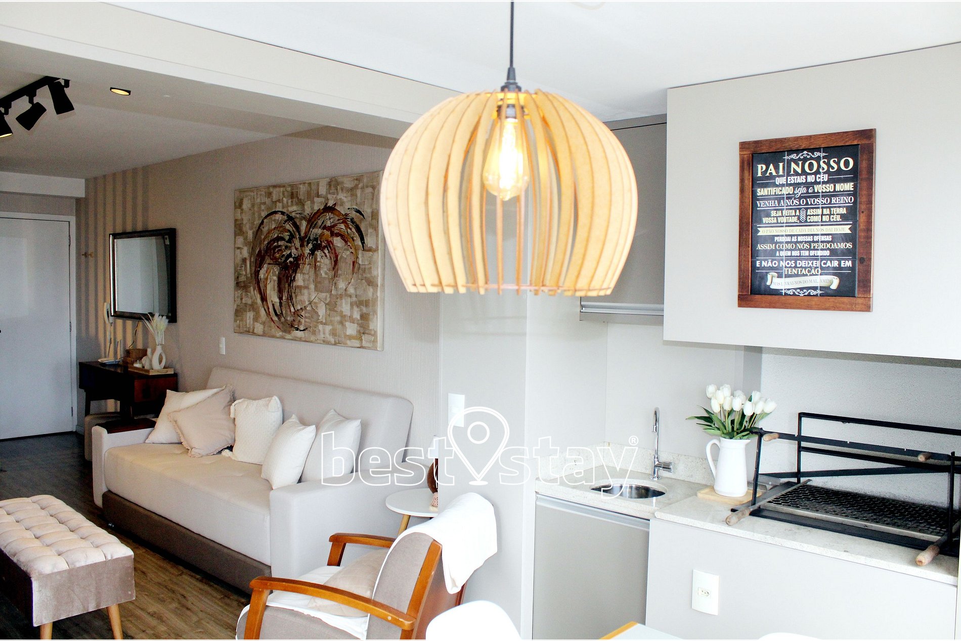 SmarTV 55 polegadas, sofá-cama super confortável c/ cama auxiliar (1 de solteiro e 1 de casal). Tudo meticulosamente decorado, com muito conforto e blackout nas cortinas.