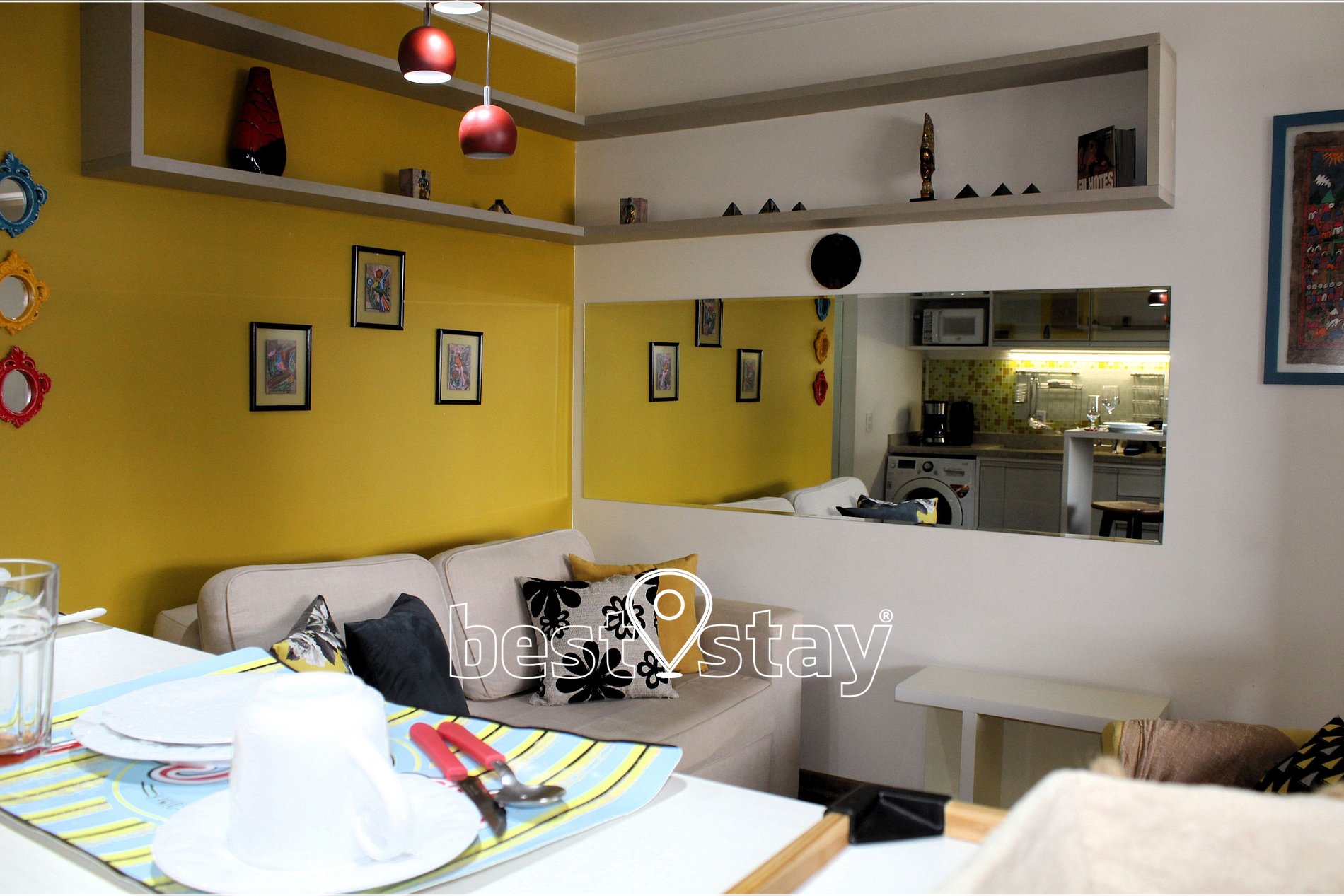 Apartamento concebido com design moderno e 100% equipado. Ideal para famílias, possui cozinha completa e equipada, redes de proteção nas Janelas e sacada, garagem privativa e numerada, garantindo sua segurança e comodidade.
