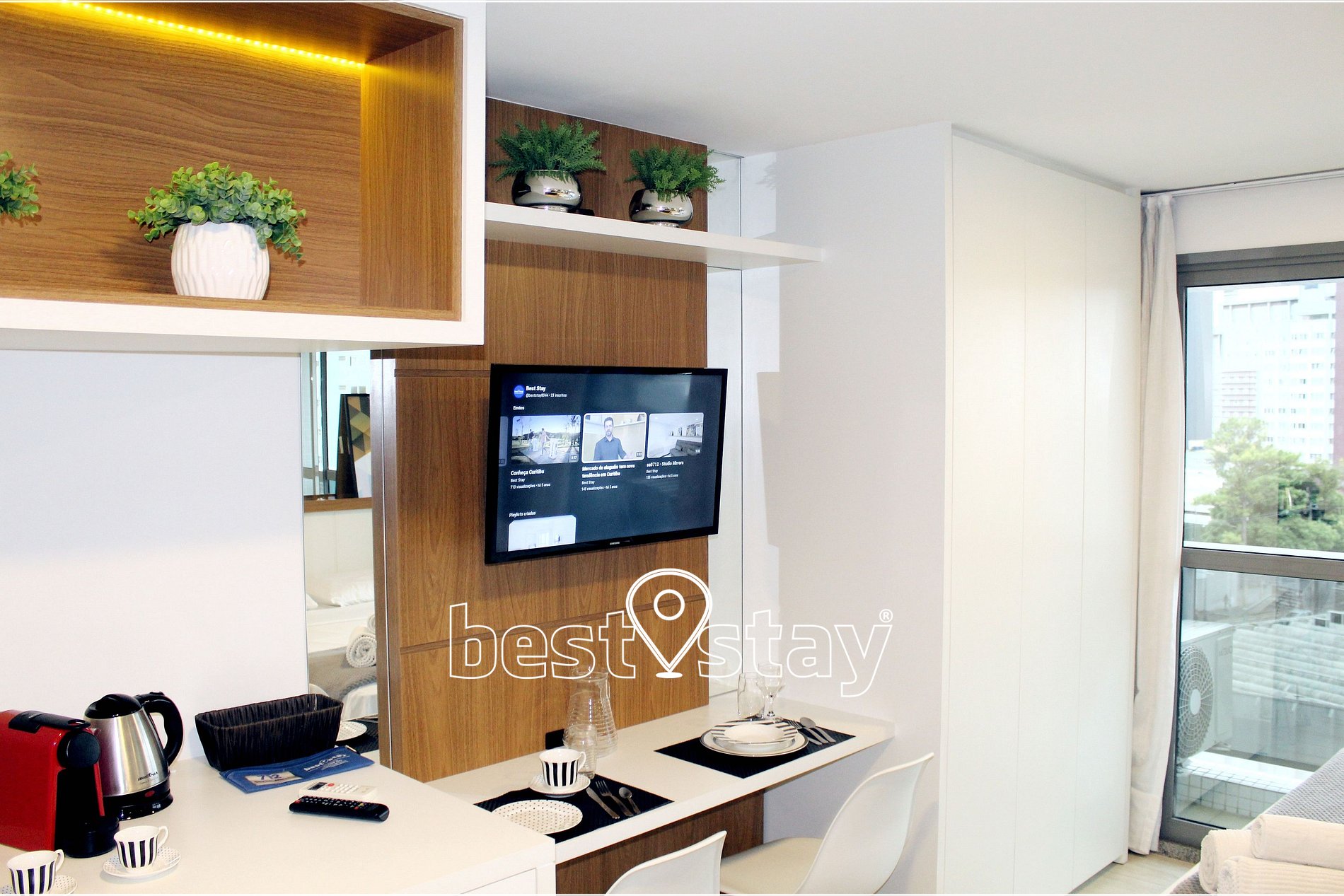 O local é excelente, limpo e o estúdio tem o espaço bem aproveitado com tudo que é preciso para uma excelente estadia. Fogão, micro ondas, talheres, etc Localização é muito boa com acesso fácil a todos os pontos turísticos da cidade. Praticidade em entrar e sair e o prédio tem facilidades bem interessantes, como o observatório do andar 31 para ver a cidade. Recomendo.
