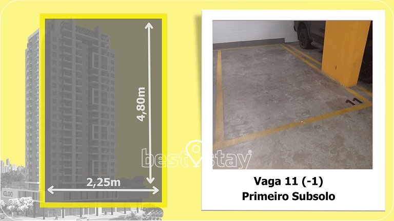 Observe, nas fotos do anuncio, as medidas da VAGA DE GARAGEM. Caso seu carro ultrapasse as medidas, e prejudique o trânsito dos demais veículos, a administração poderá solicitar a retirada do seu veículo das garagens do condomínio.