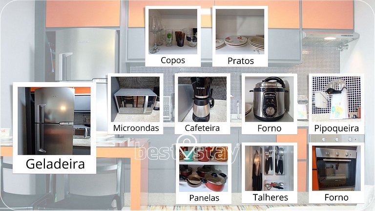OBS.: Não disponibilizamos consumíveis de cozinha (Sal, óleo, pimenta, café, filtro, etc). Caso encontre no apartamento, deixado pelo hóspede anterior, pode usar normalmente.