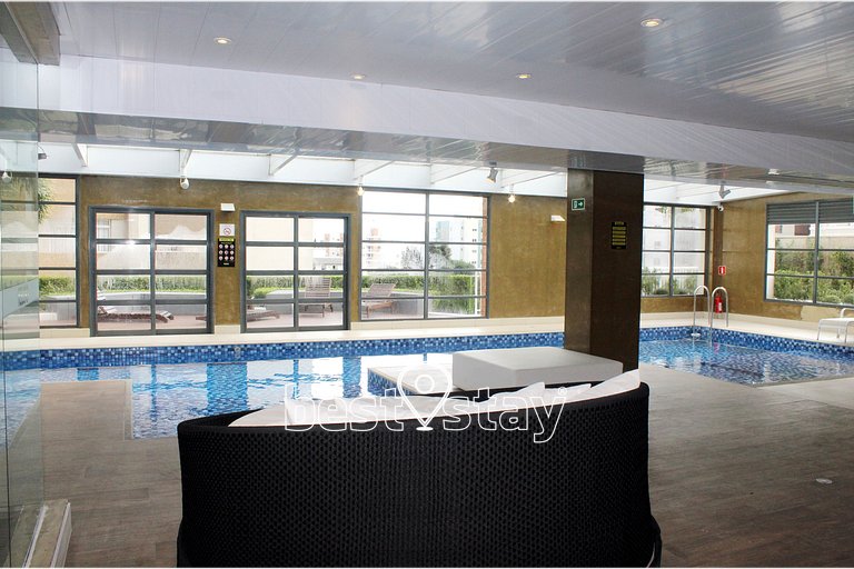 Piscina aquecida no condomínio; localização.