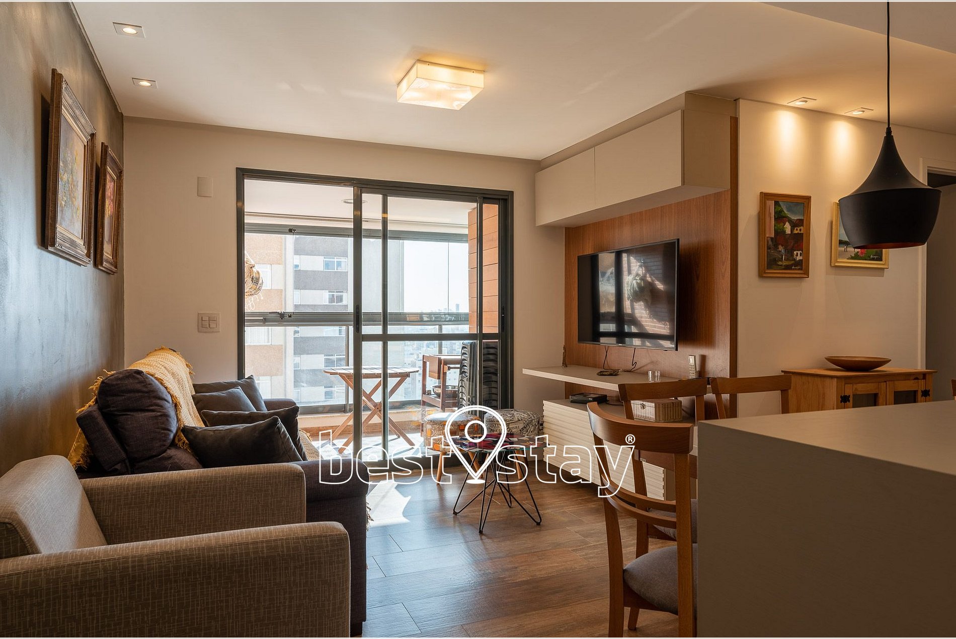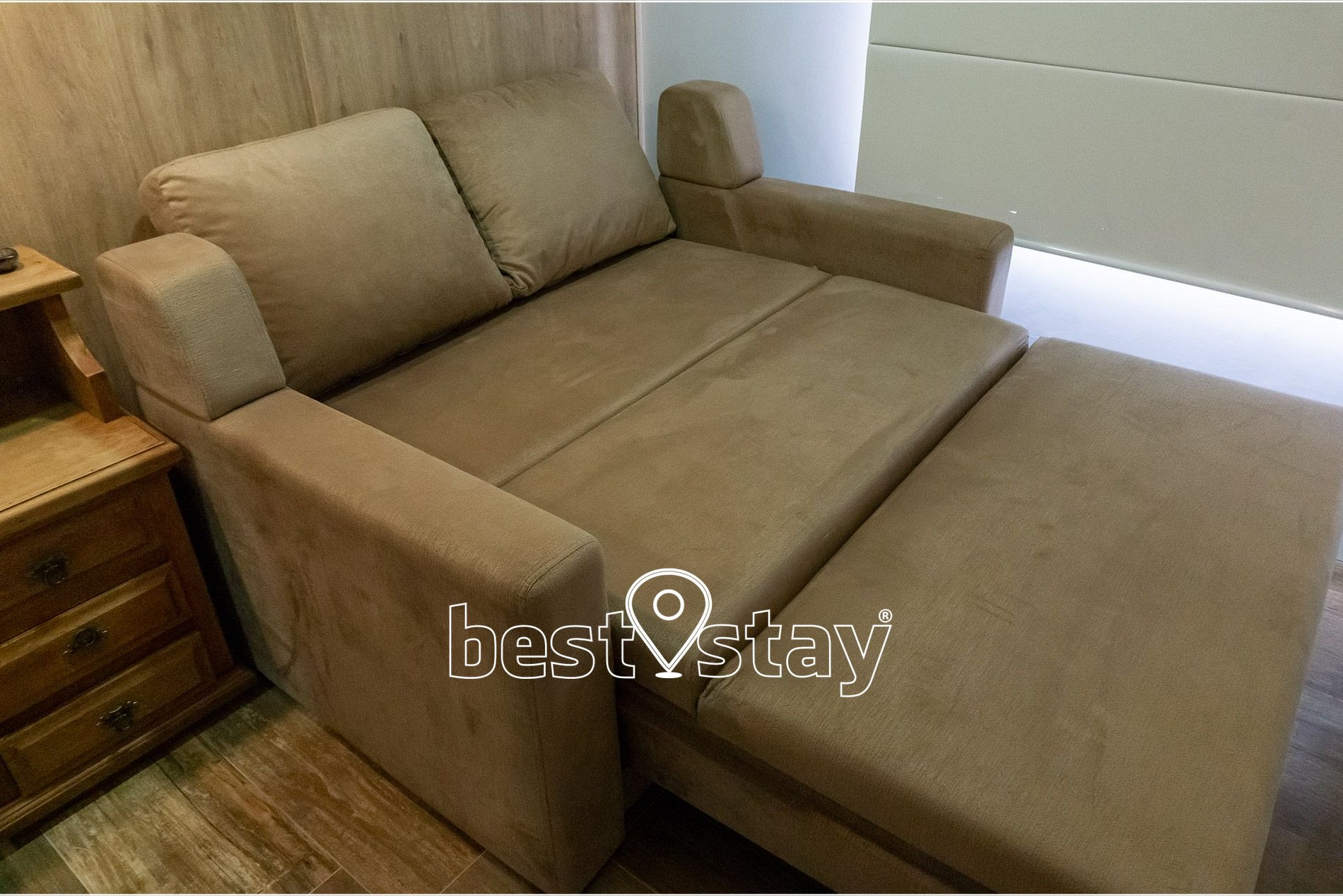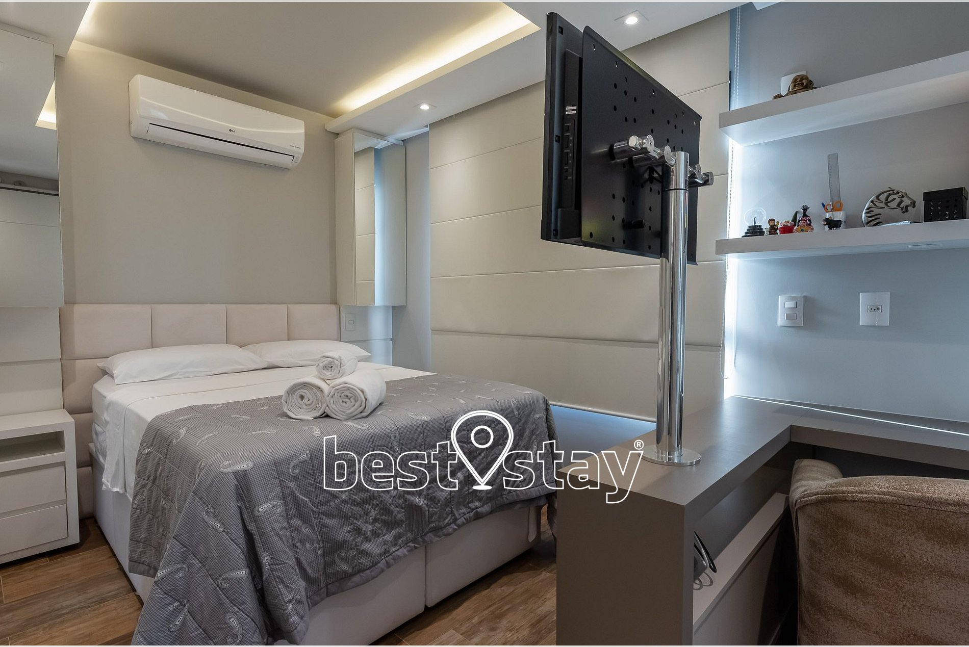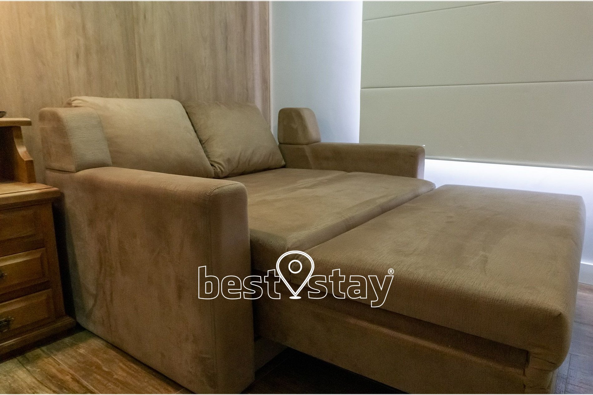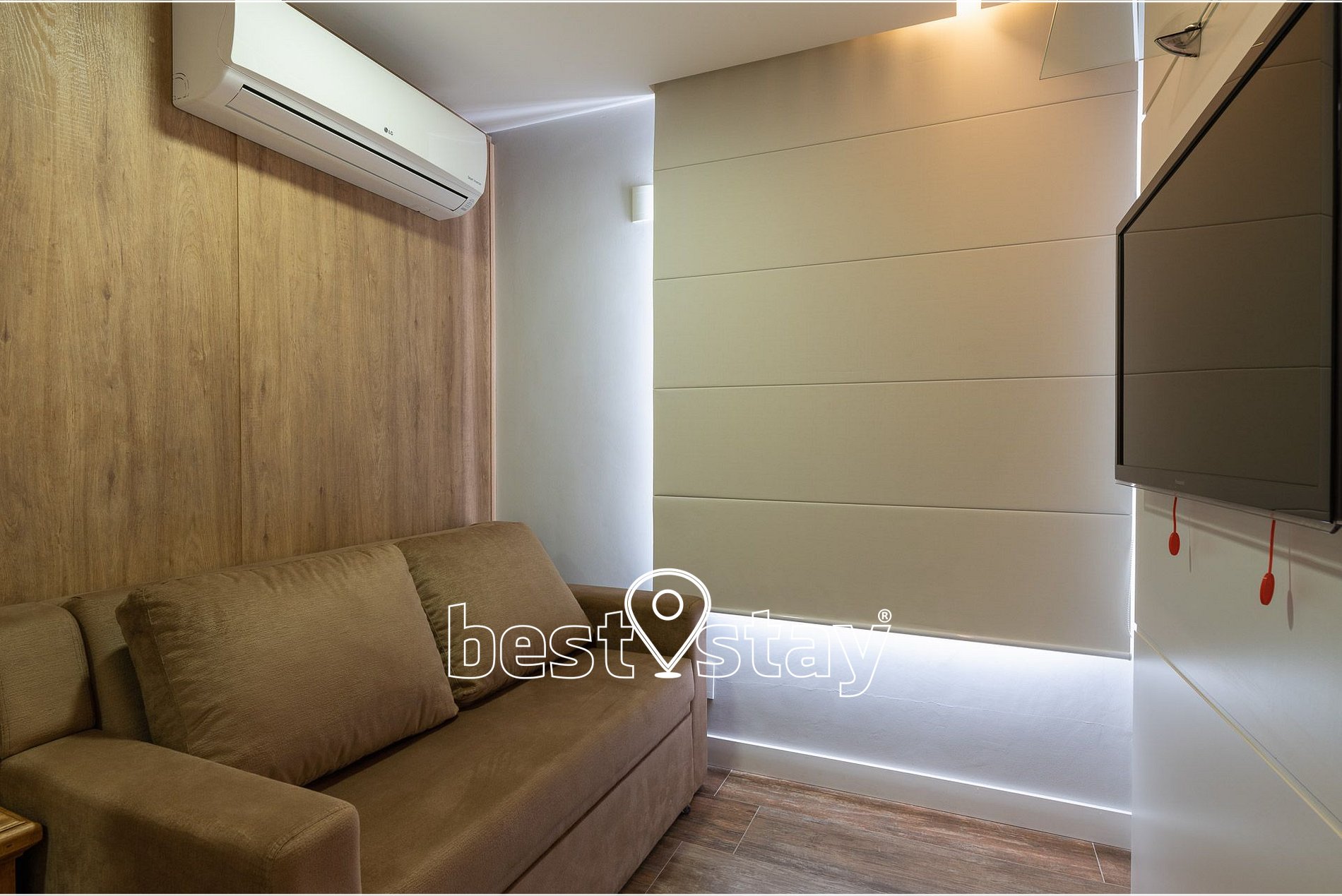 TV Smart, ar-condicionado quente e frio, sofá super confortável com chease e reclinável. Tudo meticulosamente decorado e com muito conforto.