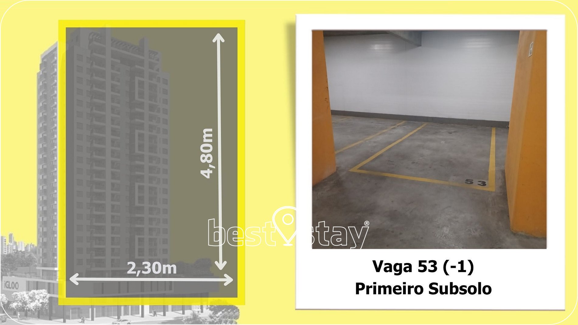 2 - Observe, nas fotos, a medida da VAGA DE GARAGEM. Se seu carro ultrapassar as medidas, NÃO SERÁ LIBERADA a entrada do veículo.