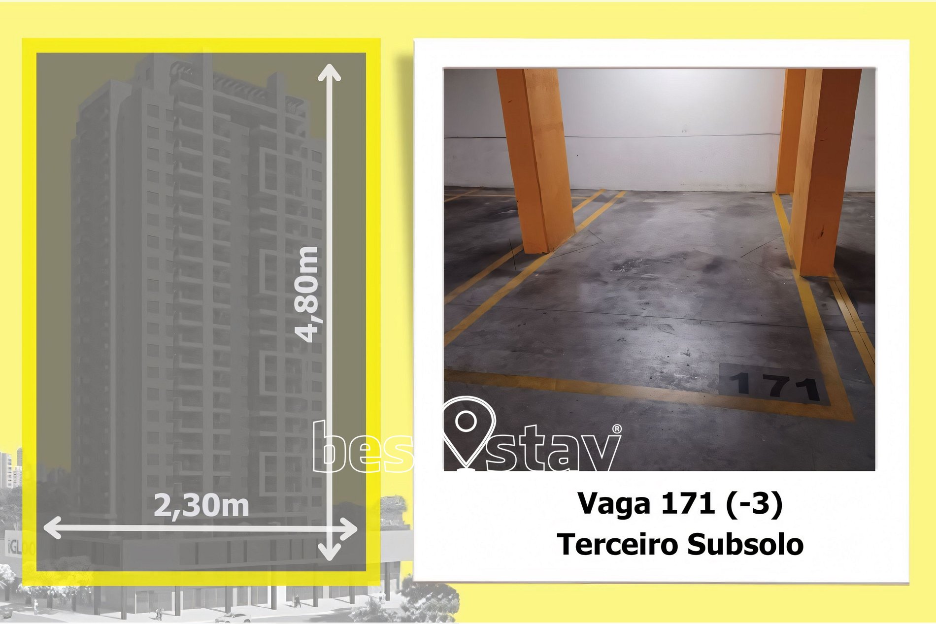 Observe, nas fotos do anuncio, as medidas da VAGA DE GARAGEM. Caso seu carro ultrapasse as medidas, e prejudique o trânsito dos demais veículos, a administração poderá solicitar a retirada do seu veículo das garagens do condomínio.