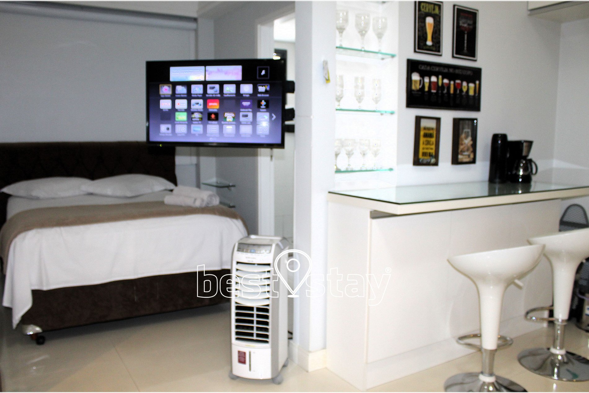 SmarTv com suporte (sala/quarto), sofá super confortável. Tudo meticulosamente decorado e com muito conforto.