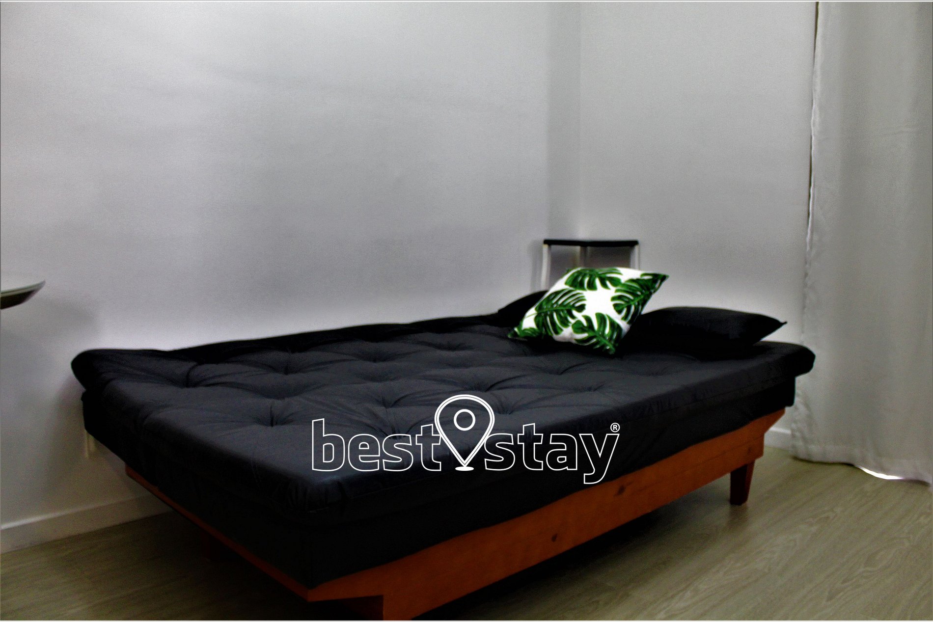 SmarTv, sofá-cama super confortável e porta para a varanda, com vista da cidade, e muito conforto.