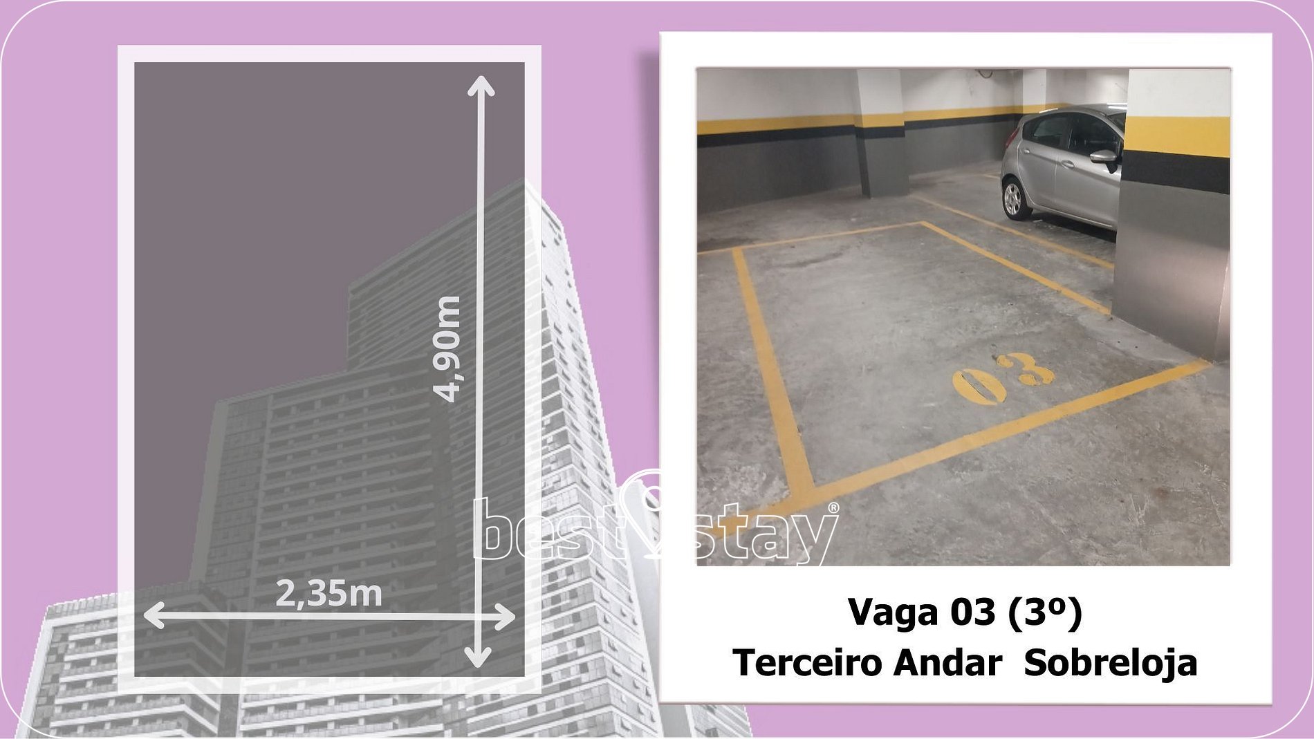 Observe, nas fotos do anuncio, as medidas da VAGA DE GARAGEM. Caso seu veículo ultrapasse as medidas, e prejudique o trânsito dos demais veículos, a administração poderá solicitar a retirada do seu veículo das garagens do condomínio.