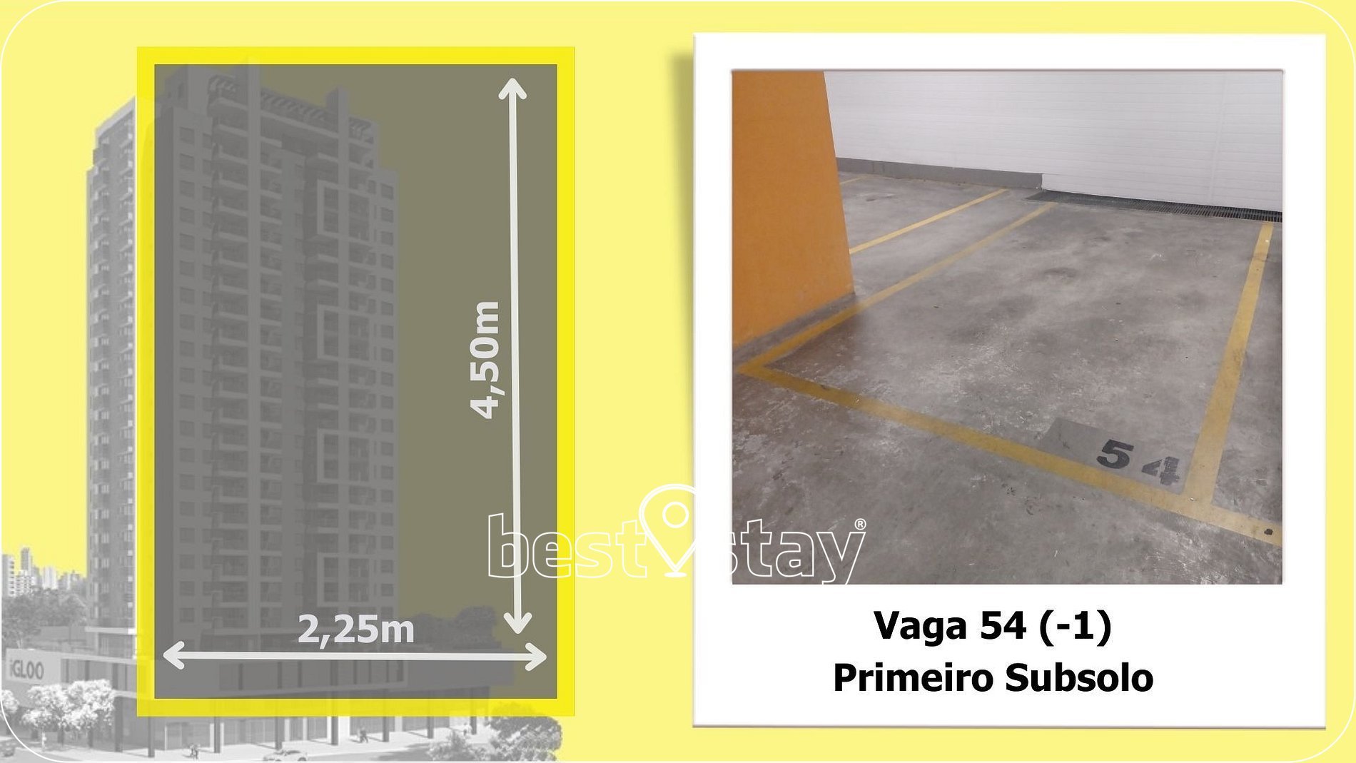 2 - Observe, nas fotos, a medida da VAGA DE GARAGEM. Se seu carro ultrapassar as medidas, NÃO SERÁ LIBERADA a entrada do veículo.