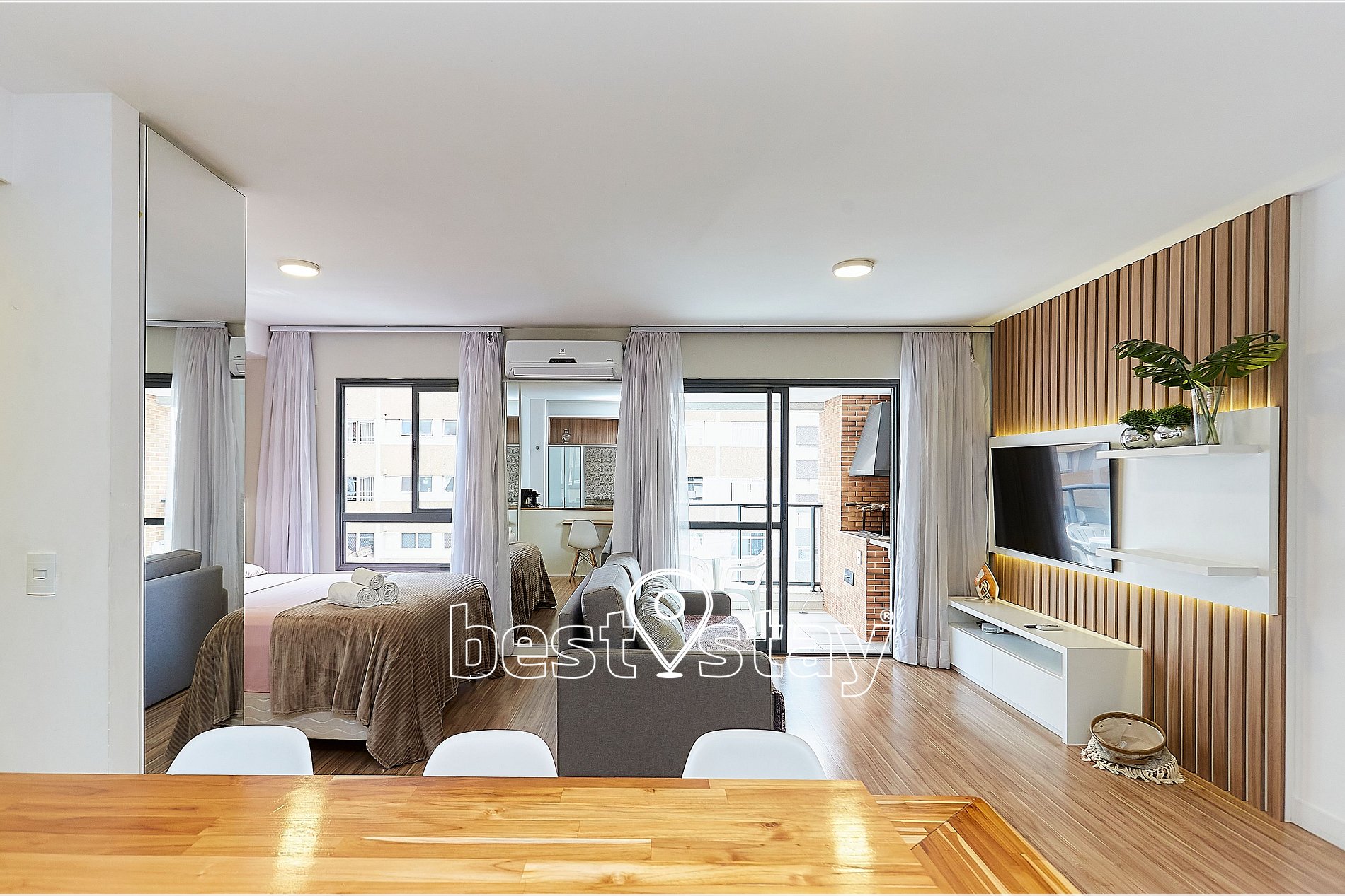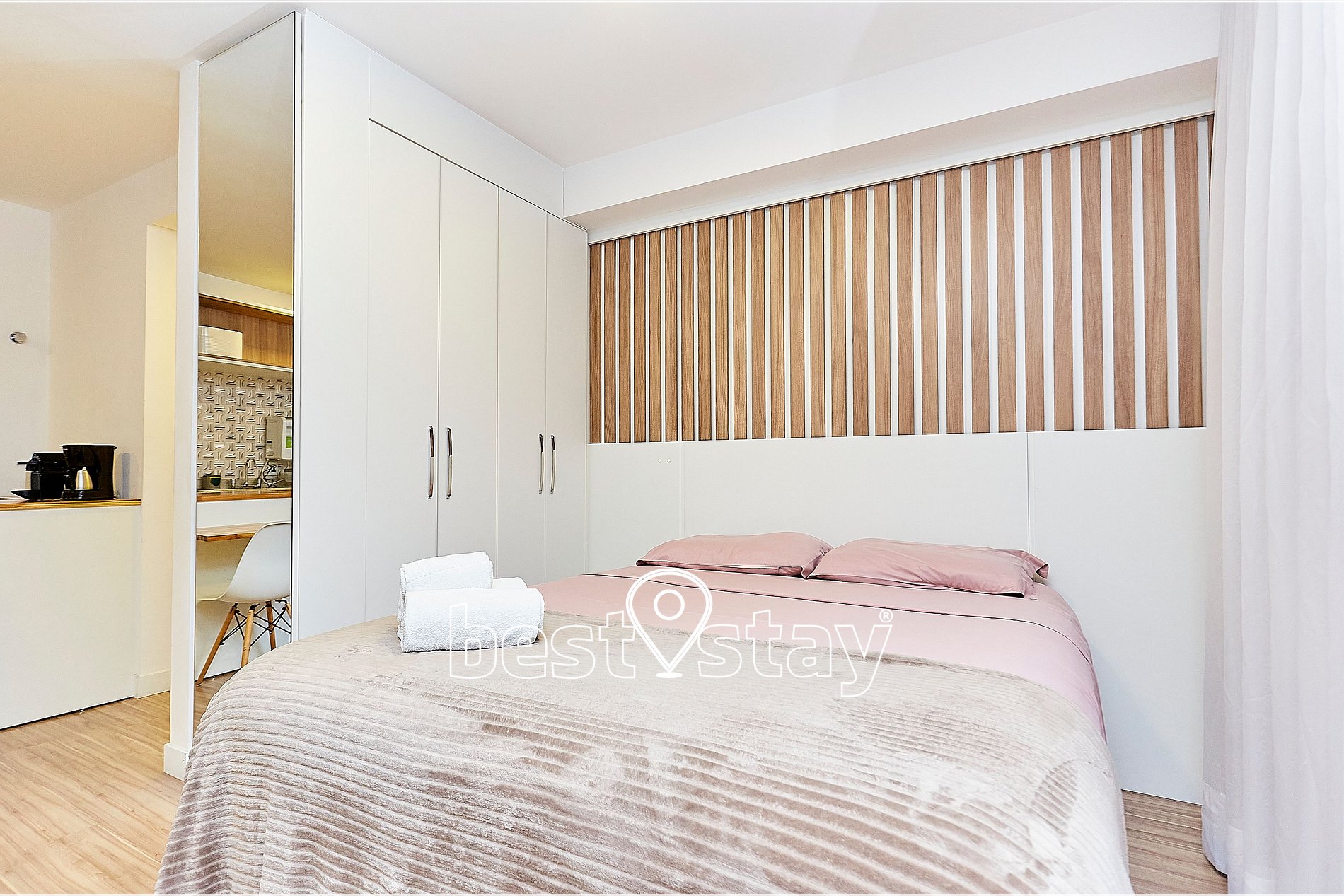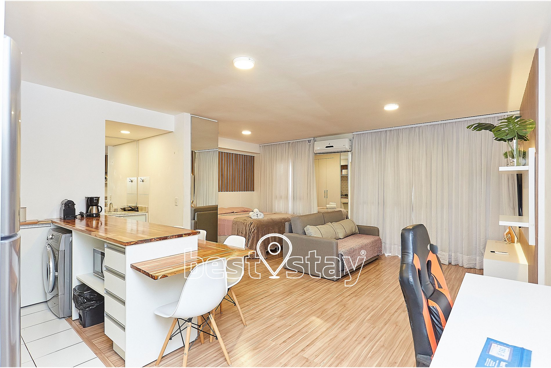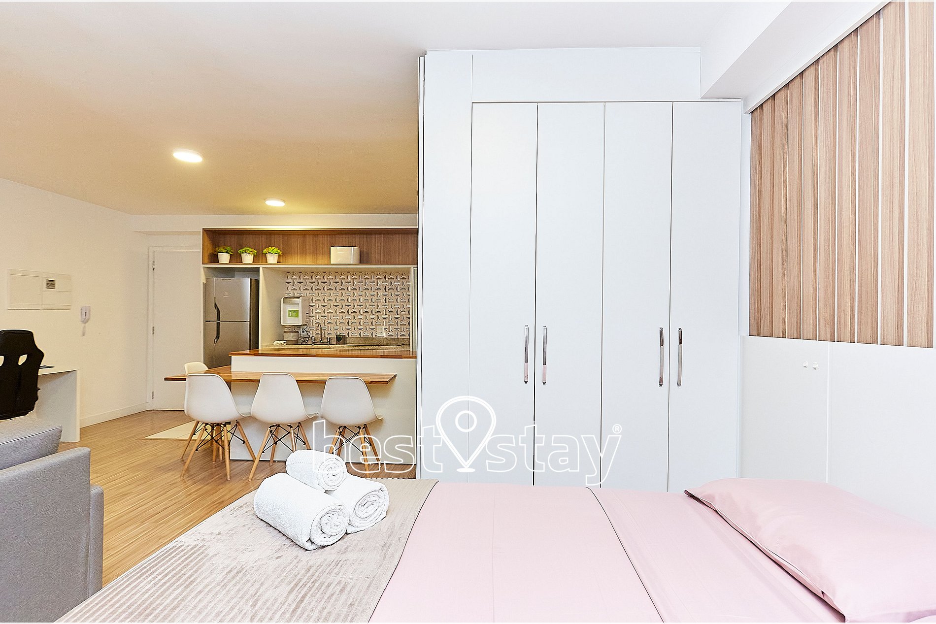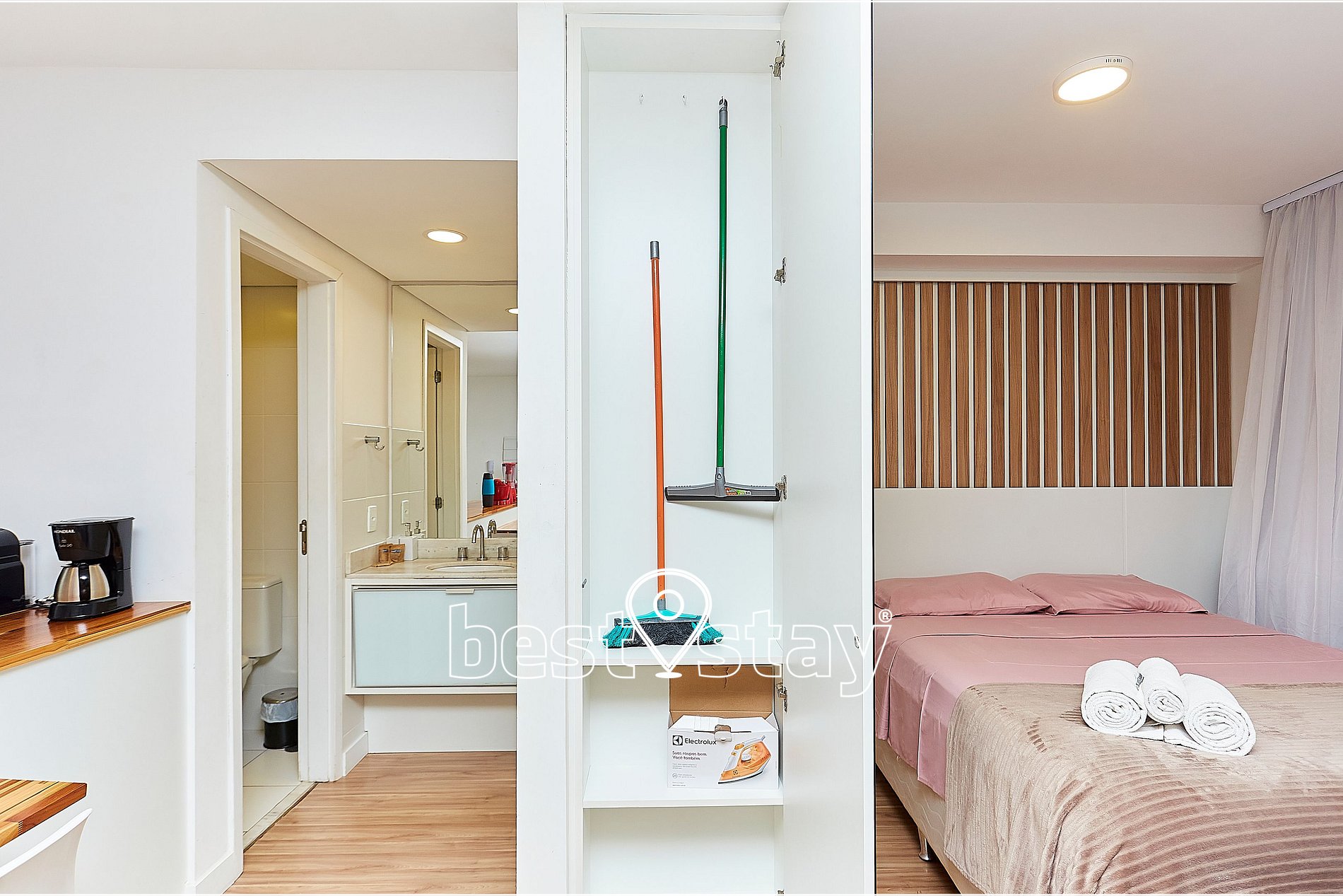 O apartamento é super agradável, gostei muito da iluminação e da limpeza. Eles fazem higienização com Ozônio, agora com a Covid. A equipe é mega atenciosa, respondem com rapidez, estão sempre prontos para ajudar. Me senti bem acolhida. O bairro é uma delicia, tem supermercado e farmácia perto, em frente ao prédio tem um café vegano maravilhoso.