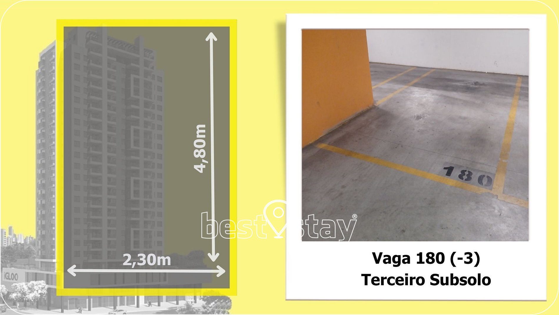 Observe, nas fotos do anuncio, as medidas da VAGA DE GARAGEM. Caso seu carro ultrapasse as medidas, e prejudicar o trânsito dos demais veículos, a administração poderá solicitar a retirada do seu veículo das garagens do condomínio.
