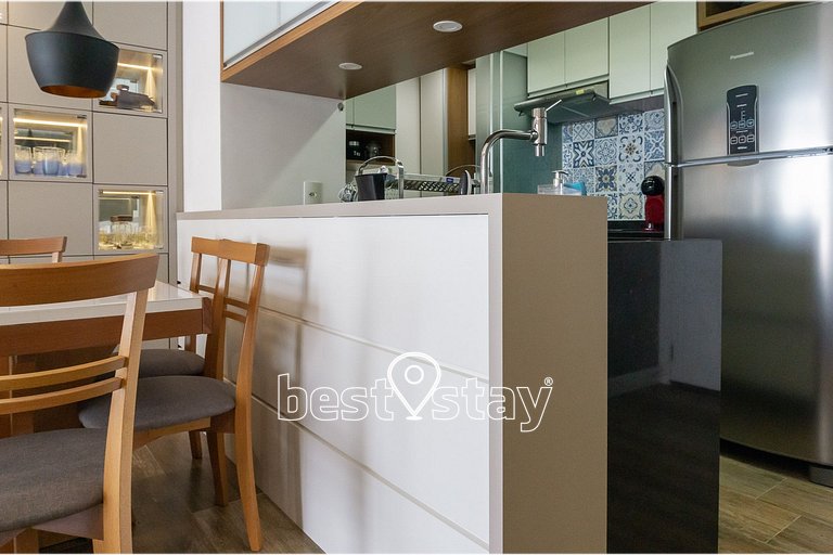 Apartamento concebido com design moderno e 100% equipado. Ideal para famílias, possui cozinha completa e equipada, garagem privativa e numerada, garantindo sua segurança e comodidade. Possibilidade de locação de 2ª vaga de garagem, mediante disponibilidade.